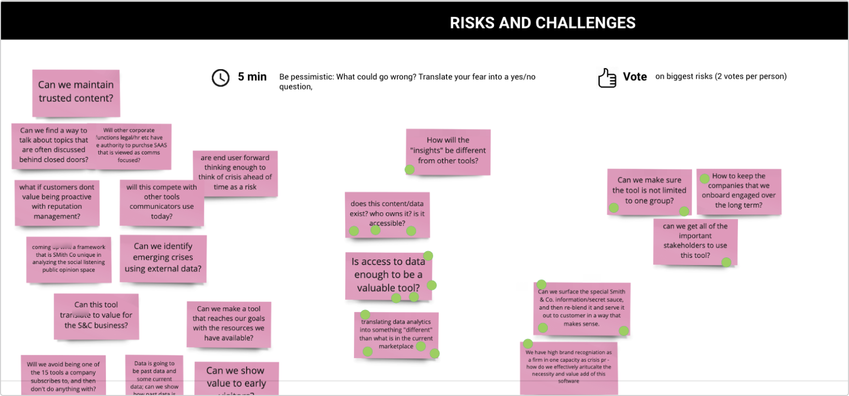 We led a design sprint workshop to help our client partners focus their vision into a product concept. It also served to deepen our understanding of the domain, the customer, and the competitive landscape.